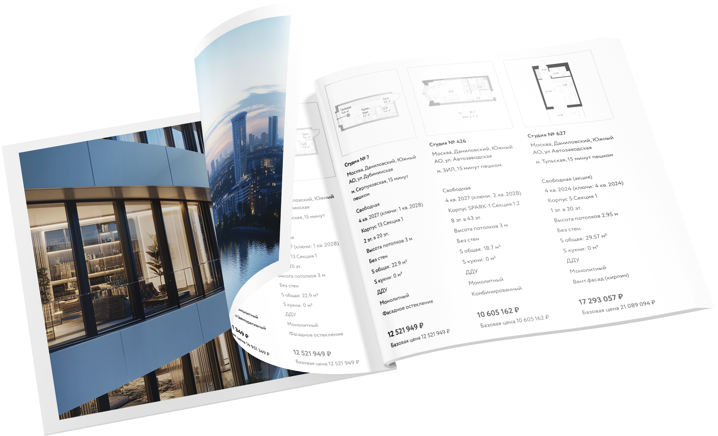 При этом используем не только профессиональную программу для агентств недвижимости, но и собственные аналитические инструменты, которые показывают, насколько покупка действительно выгодна — с учетом цены, стадии стройки и перспектив локации.